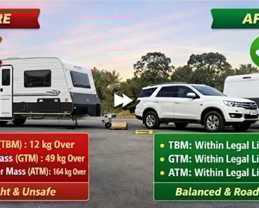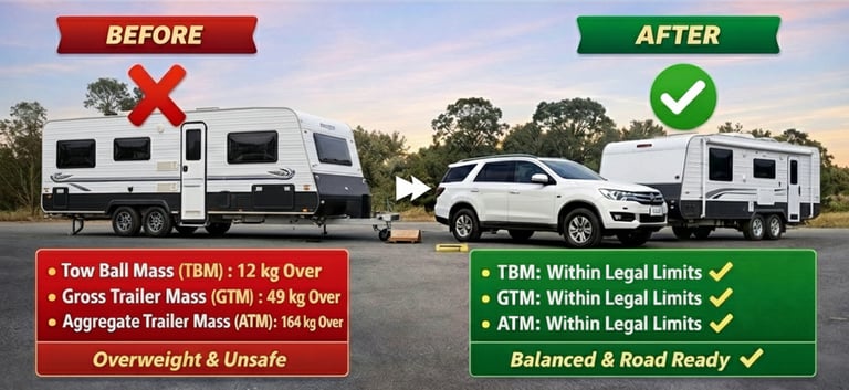 Every caravan and motorhome has legal weight limits, including GVM, axle loads, and tow ratings. Exceeding these limits can make your setup non-compliant, potentially leading to fines, failed inspections, or insurance issues if an accident occurs.